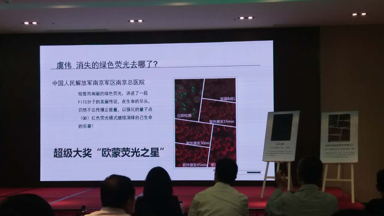 最終,來自南京軍區總醫院檢驗科虞偉老師的作品《消失的綠色熒光哪去了?》以及來自中山大學附屬第一醫院檢驗科曾智杰老師的作品《光之蝶》并列奪得本次大賽的超級大獎“歐蒙熒光之星”!