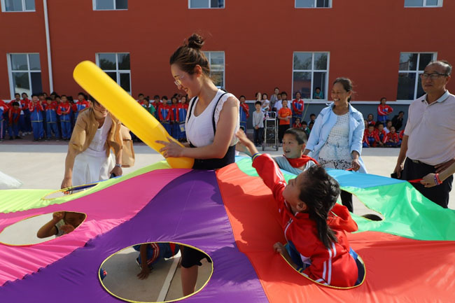 互動(dòng)課堂活動(dòng)結(jié)束后,一場別開生面的趣味運(yùn)動(dòng)會(huì)將整個(gè)活動(dòng)點(diǎn)燃了所有人的熱情,孩子們把他們的感謝都融入其中,嘉賓和志愿者們也與孩子們?nèi)跒橐惑w,努力為自己團(tuán)隊(duì)爭取勝利,現(xiàn)場高潮迭起,笑聲不絕于耳, 吶喊聲、喝彩聲回蕩在山間。