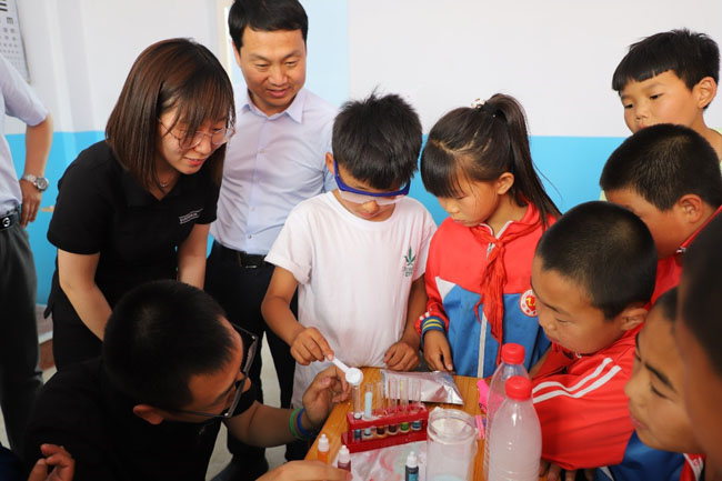 與志愿者們共同見證主題為 “追夢同行 預(yù)見未來”的愛心幫扶公益行動(dòng)在葫蘆島市南票區(qū)村小落地生根的領(lǐng)導(dǎo)和嘉賓有:歐蒙醫(yī)學(xué)診斷(中國)有限公司亞太區(qū)總裁李川先生、中共葫蘆島市南票區(qū)委書記郭毅同志、歐蒙醫(yī)學(xué)檢驗(yàn)所總監(jiān)張欣先生、南票區(qū)政府副區(qū)長趙婧同志、中國科學(xué)院心理研究所、中國科學(xué)院大學(xué)王晶教授、南票區(qū)教育局局長樊漢權(quán)同志、中共缸窯嶺鎮(zhèn)黨委書記吳春雷同志、南票區(qū)政府教育督導(dǎo)室主任孫世俠同志、南票區(qū)全民健身指導(dǎo)中心主任馬良同志。