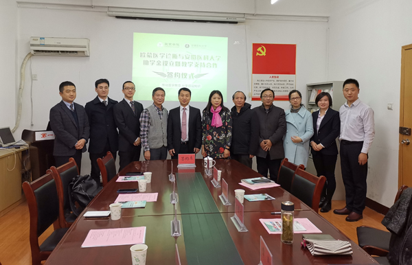 2018年12月19日,歐蒙亞太集團(tuán)總裁李川先生一行走進(jìn)安徽醫(yī)科大學(xué),筑夢學(xué)子,與安徽醫(yī)科大學(xué)簽署“歐蒙助學(xué)金”暨教學(xué)支持合作協(xié)議。安醫(yī)大教育基金會秘書長許柏松,校學(xué)生處副處長吳熱生,第一臨床醫(yī)學(xué)院黨委副書記、學(xué)生黨總支書記楊秀蘭,檢驗系主任徐元宏,學(xué)生黨總支副書記薛磊等相關(guān)負(fù)責(zé)人出席儀式。