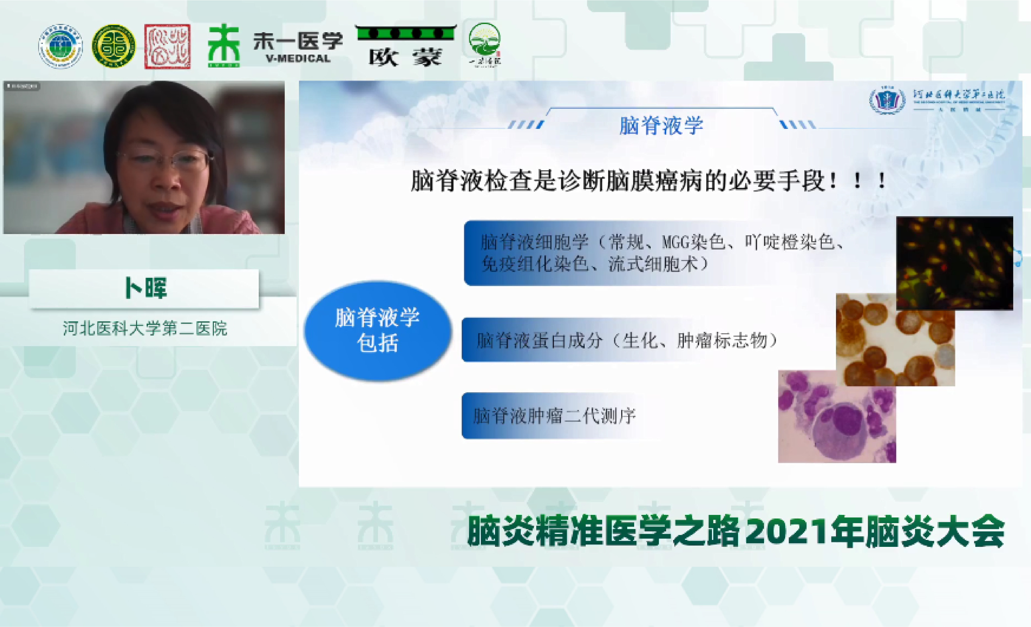 腦脊液檢查是診斷腦膜癌病的必要手段,河北醫(yī)科大學(xué)第二醫(yī)院卜暉教授詳細(xì)介紹了腦脊液學(xué)在腦膜癌病診治中的應(yīng)用。腦脊液細(xì)胞學(xué)是診斷腦膜癌病的金標(biāo)準(zhǔn),特異性為100%,靈敏度為45-90%。除腦脊液常規(guī)檢測外,卜暉教授通過病例介紹和文獻(xiàn)報(bào)道,介紹了細(xì)胞免疫組織化學(xué)染色、流式細(xì)胞技術(shù)檢測、腦脊液腫瘤標(biāo)記物檢測、液體活檢技術(shù)在腦膜癌診斷、觀察療效及復(fù)發(fā)評估中的應(yīng)用。腦脊液的基因組學(xué)、蛋白組學(xué)為腦膜癌的精準(zhǔn)診斷提供了重要依據(jù)。首都醫(yī)科大學(xué)宣武醫(yī)院武力勇教授作為本環(huán)節(jié)的主持嘉賓,結(jié)合報(bào)告的內(nèi)容進(jìn)行精彩總結(jié)。
