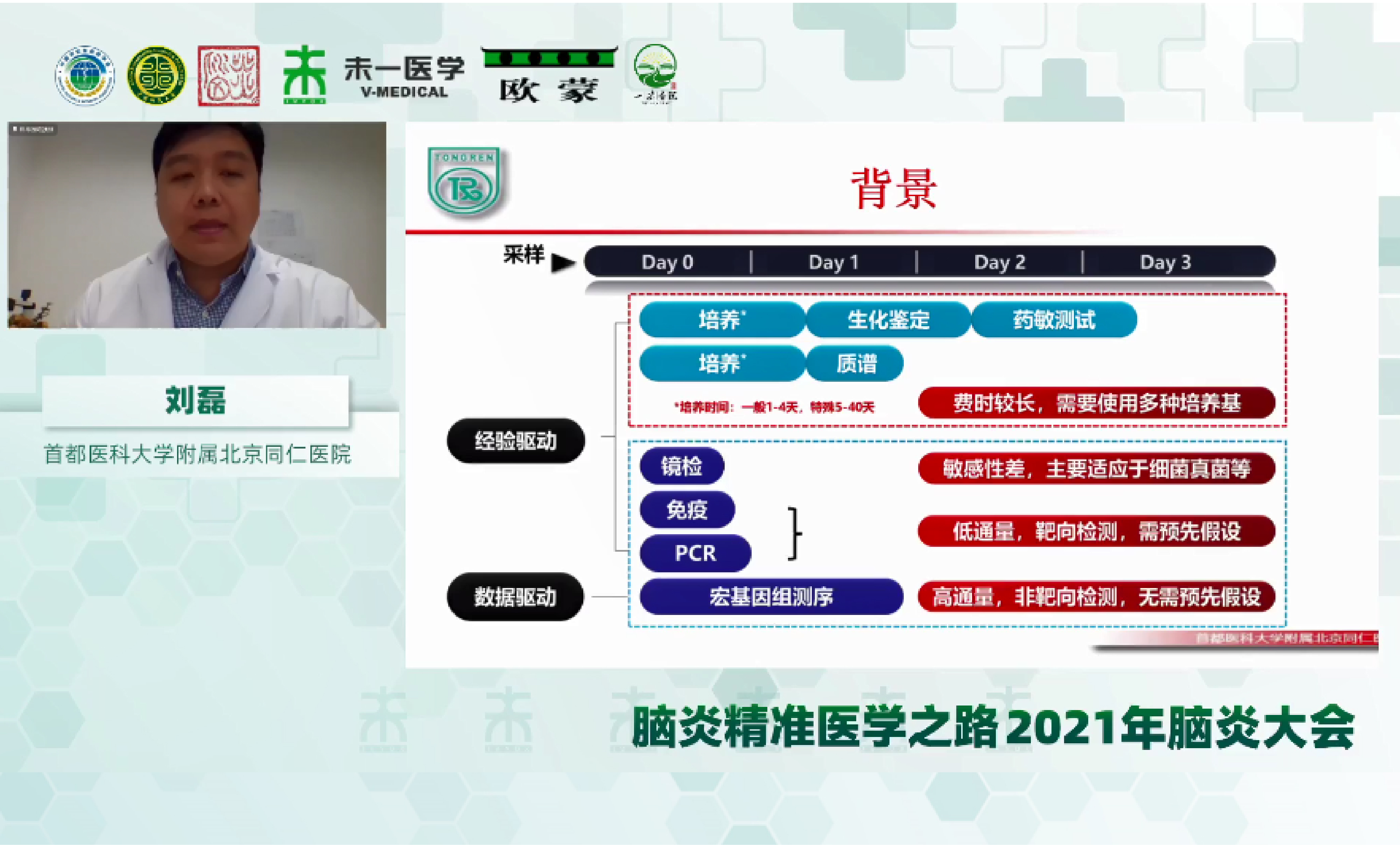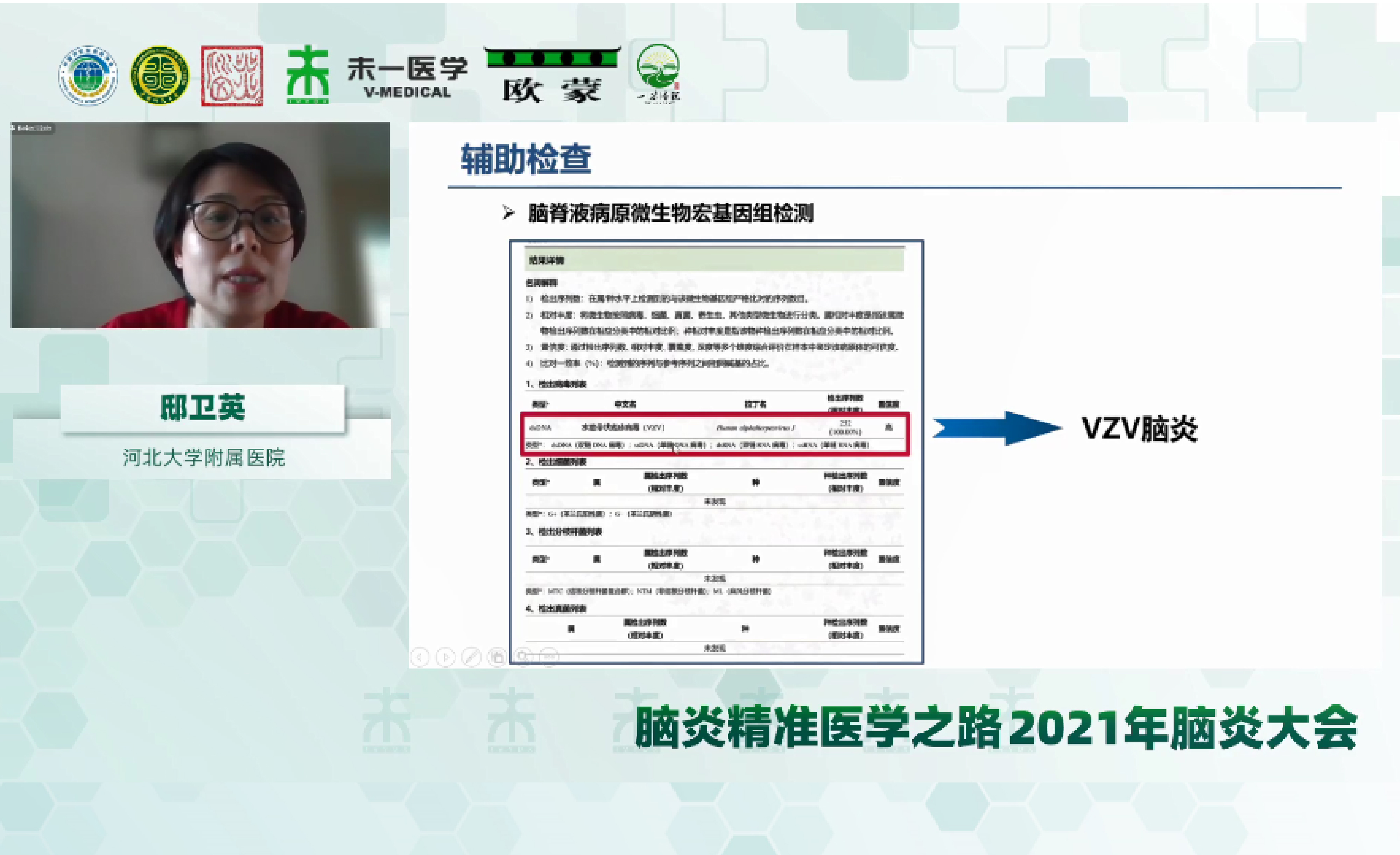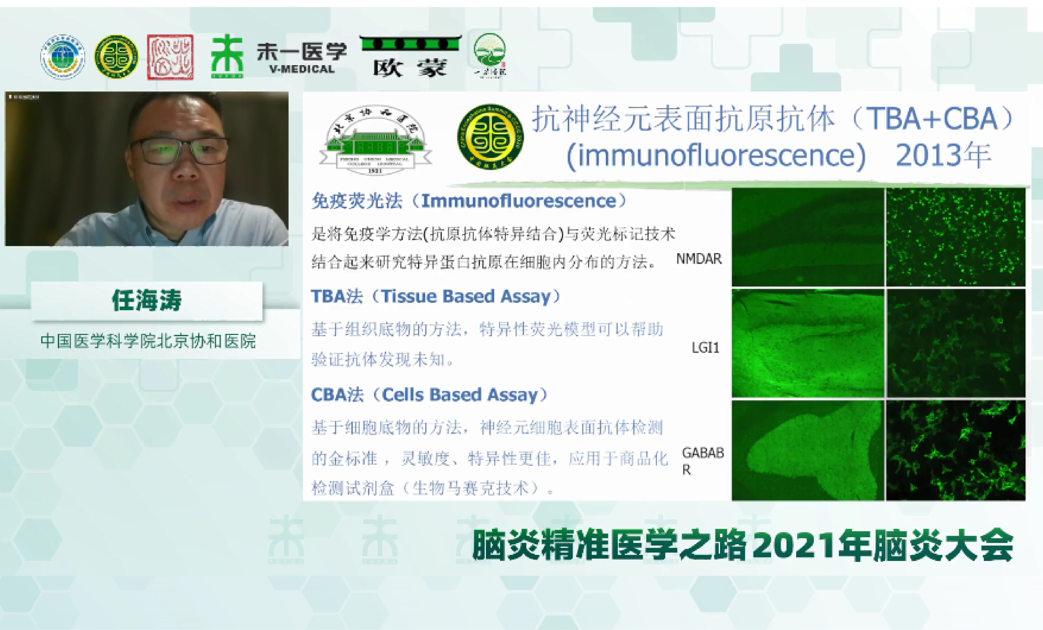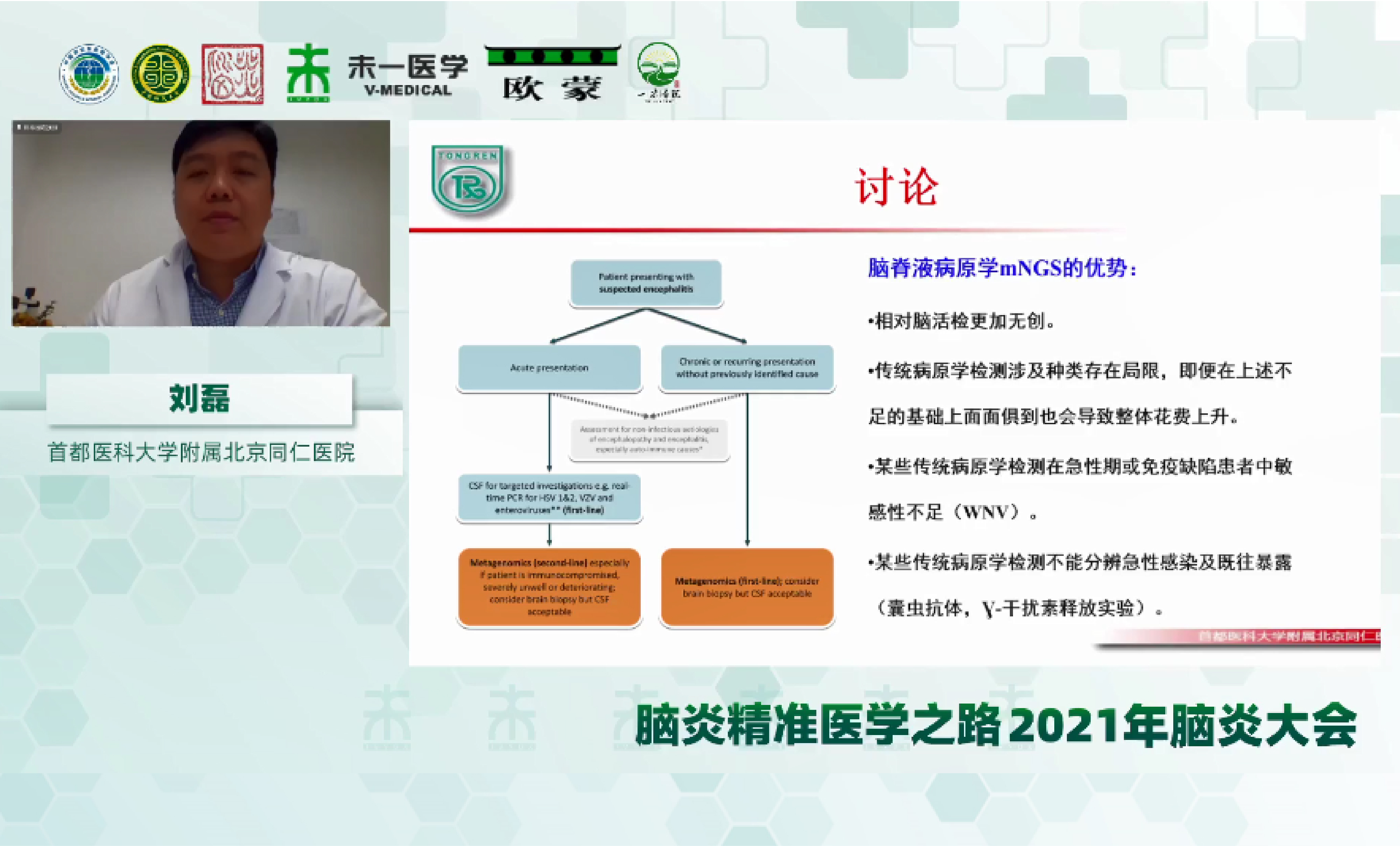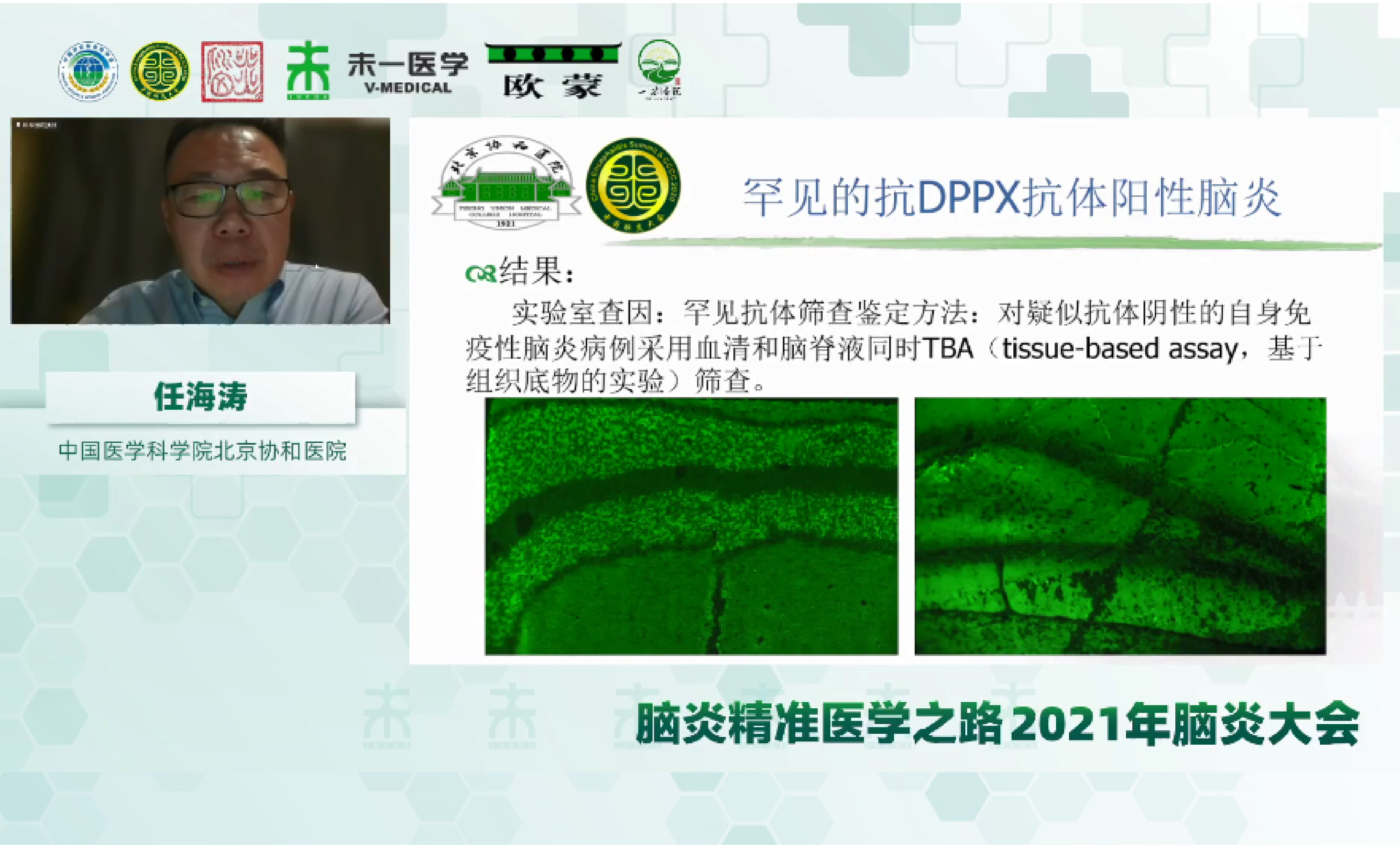 2021年4月23日北京協(xié)和醫(yī)院關(guān)鴻志教授團(tuán)隊(duì)與未一醫(yī)學(xué)共同發(fā)起了全國多中心腦炎病因診斷一體化方案研究項(xiàng)目,目前已有近30家醫(yī)院參與。未一醫(yī)學(xué)作為唯一一家第三方實(shí)驗(yàn)室,為該項(xiàng)目提供樣本檢測以及樣本管理等支持。本次會議上關(guān)鴻志教授回顧近半年腦炎病因診斷一體化方案研究進(jìn)展。對于原因未明的腦炎,通過腦炎一體化項(xiàng)目檢測,協(xié)和醫(yī)院實(shí)驗(yàn)室近兩年發(fā)現(xiàn)了18種抗體,其中與中科院王晶教授團(tuán)隊(duì),應(yīng)用TBA方法,發(fā)現(xiàn)了新型抗小腦浦肯野細(xì)胞抗體-抗Rab6抗體。對于符合入組標(biāo)準(zhǔn)的患者,項(xiàng)目組可以提供免費(fèi)的腦脊液細(xì)胞學(xué)、二代測序宏基因組檢測,同時北京協(xié)和醫(yī)院關(guān)教授團(tuán)隊(duì)可提供遠(yuǎn)程線上會診。最后,關(guān)教授邀請線上的醫(yī)學(xué)同仁共同參與到腦炎一體化項(xiàng)目,齊力推動腦炎病因精準(zhǔn)診斷前行。未一研究院仲人前教授作為本環(huán)節(jié)的主持嘉賓,結(jié)合報(bào)告的內(nèi)容進(jìn)行精彩總結(jié)。