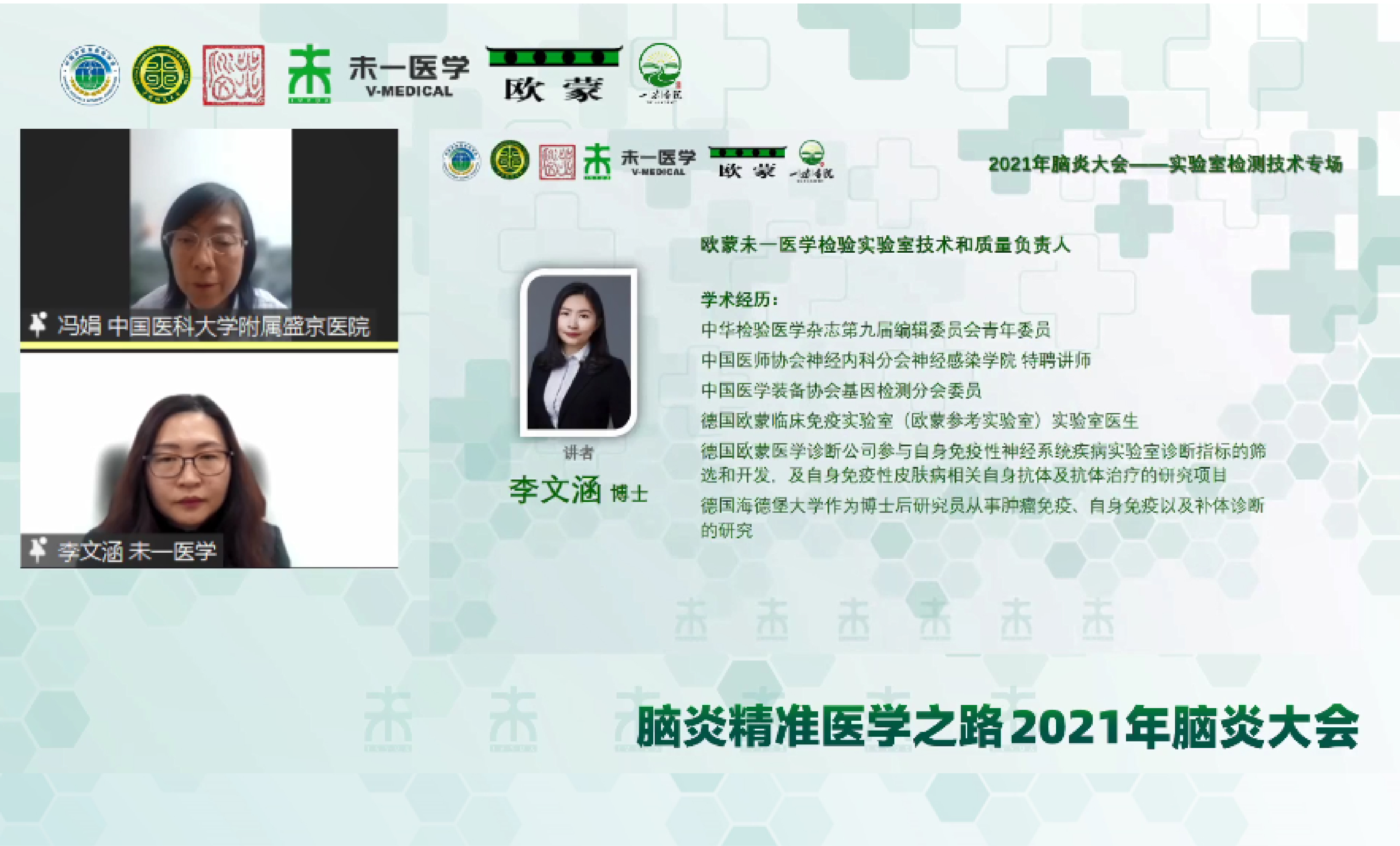 2019年腦炎大會首次舉辦,開啟“腦炎精準(zhǔn)醫(yī)學(xué)之路”,2021腦炎大會延續(xù)“腦炎精準(zhǔn)醫(yī)學(xué)之路”主題,神經(jīng)免疫專場、感染與小兒神經(jīng)專場已成功舉辦,12月19日腦炎大會第三專場-實(shí)驗(yàn)室檢測技術(shù)專場圓滿結(jié)束,2021腦炎大會完美收官,累計(jì)8.4萬余人線上參與。本次會議由中國研究型醫(yī)院學(xué)會神經(jīng)科學(xué)專委會主辦,北京協(xié)和醫(yī)院神經(jīng)科、中國科學(xué)院承辦,未一醫(yī)學(xué)檢驗(yàn)實(shí)驗(yàn)室、歐蒙醫(yī)學(xué)診斷(中國)有限公司、一味書院協(xié)辦。來自國內(nèi)的神經(jīng)領(lǐng)域、檢驗(yàn)領(lǐng)域及其他相關(guān)領(lǐng)域的醫(yī)學(xué)同仁線上齊聚,共同探討腦脊液細(xì)胞學(xué)、抗體檢測等檢測技術(shù)在臨床中的應(yīng)用,促進(jìn)臨床與檢驗(yàn)之間的緊密合作,推動腦炎精準(zhǔn)診療前行。