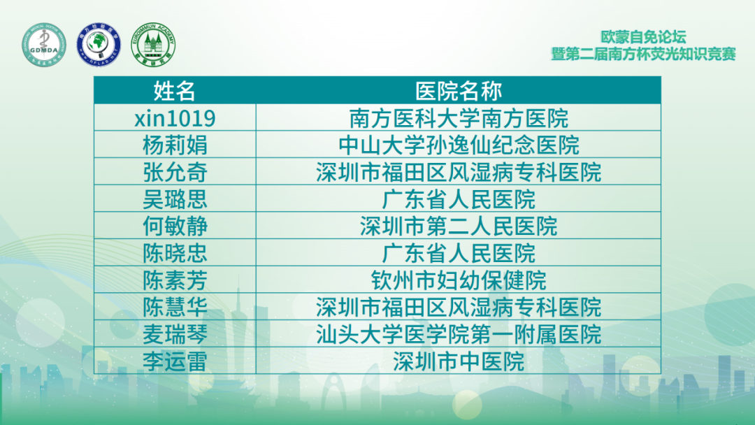 至此,“歐蒙自免論壇第二屆南方杯熒光知識競賽”圓滿結(jié)束!特別感謝各位嘉賓對本次會議的大力支持,感謝各位選手的積極參與。歐蒙也將持續(xù)秉承“科技創(chuàng)新造就卓越品質(zhì),歐蒙診斷促進人類健康”的企業(yè)宗旨,攜手醫(yī)學(xué)同仁,為醫(yī)學(xué)檢驗事業(yè)邁向更美好的未來而貢獻力量!