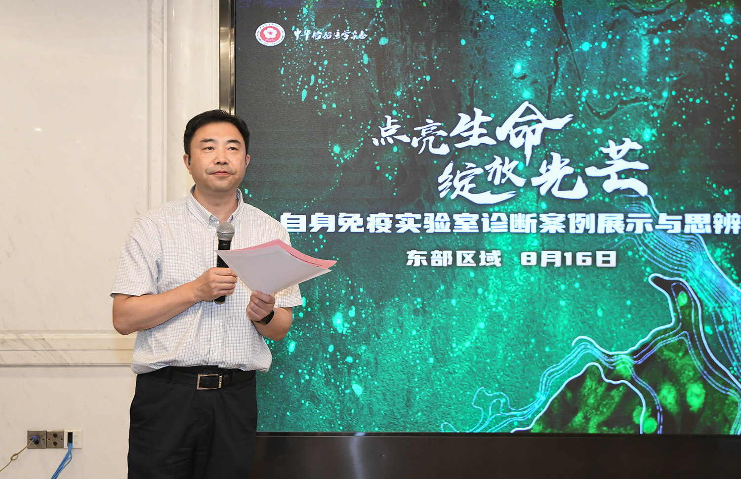 中華檢驗醫學雜志編輯部唐棟編輯代表主辦方致歡迎詞,向關注和支持案例思辨與展示活動的業界同仁表達了誠摯的感謝,特別感謝東部區域主席沈瀚教授以及各位講課專家、指導專家對活動的大力支持。唐棟編輯表示,此次活動通過案例思辨與深入的分析探討,展現專業智慧,激發創新思維,促進檢驗與臨床深度對話與融合,凝練并傳播優秀實踐經驗,共同探索提升自身免疫性疾病診療水平的新路徑,最終惠及廣大患者。